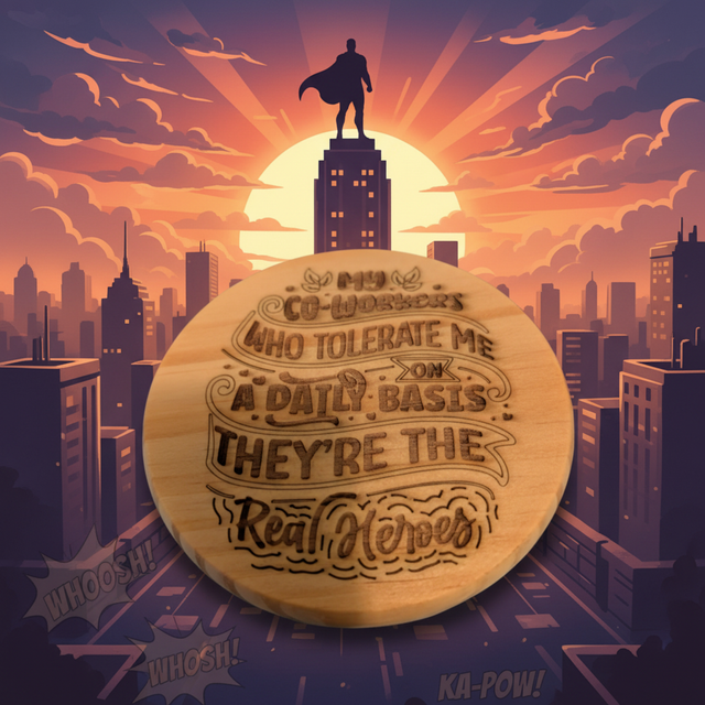 Add a touch of wit and charm to your workspace with our witty, work-related sarcastic wooden coasters! Crafted from high-quality round wood, these coasters blend humor with functionality, protecting your desk from unsightly coffee rings while sparking a smile with every sip. Perfect for office desks, home workstations, or as a funny gift for colleagues and friends, they bring personality to any work environment. Durable and easy to clean, these coasters are both practical and playful, making break time more enjoyable. Elevate your desk setup with a fun accessory that’s as clever as your coffee conversations!